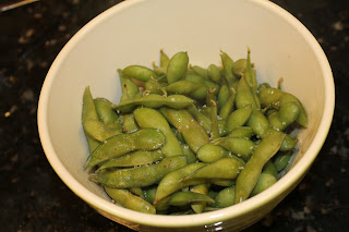 Steam bag of Edamame (from frozen section) in the microwave, add sea salt, and there you have a full Sushi meal at home!